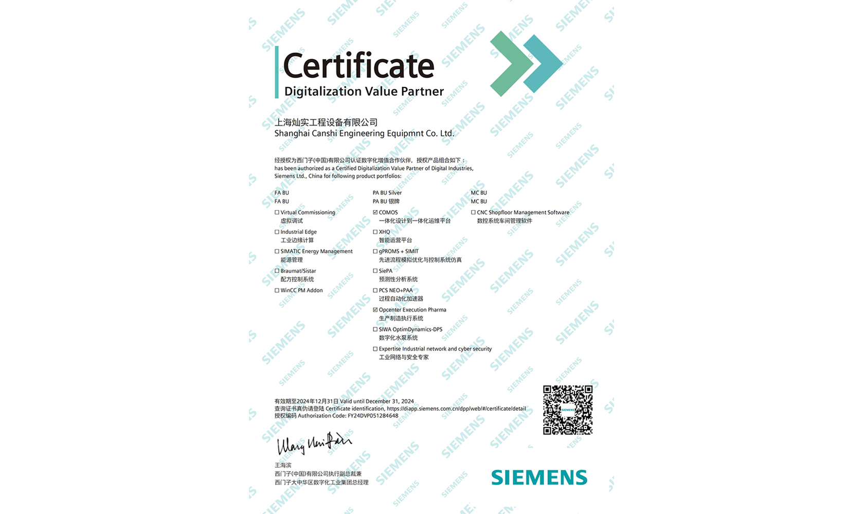 西門子授權(quán)證書